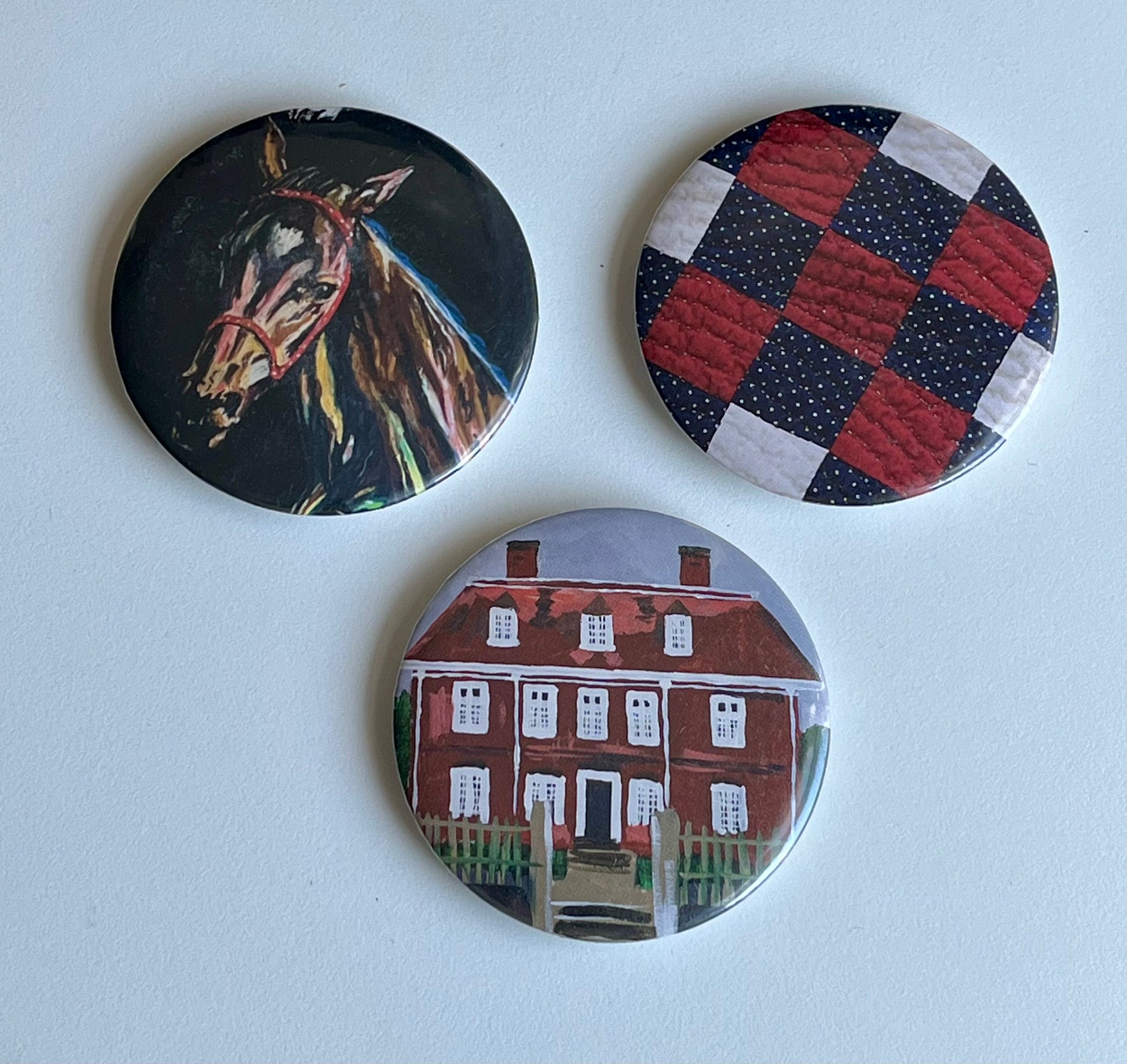 A pack of THREE 2.25" pinback buttons, hand-pressed in Brooklyn from found source material