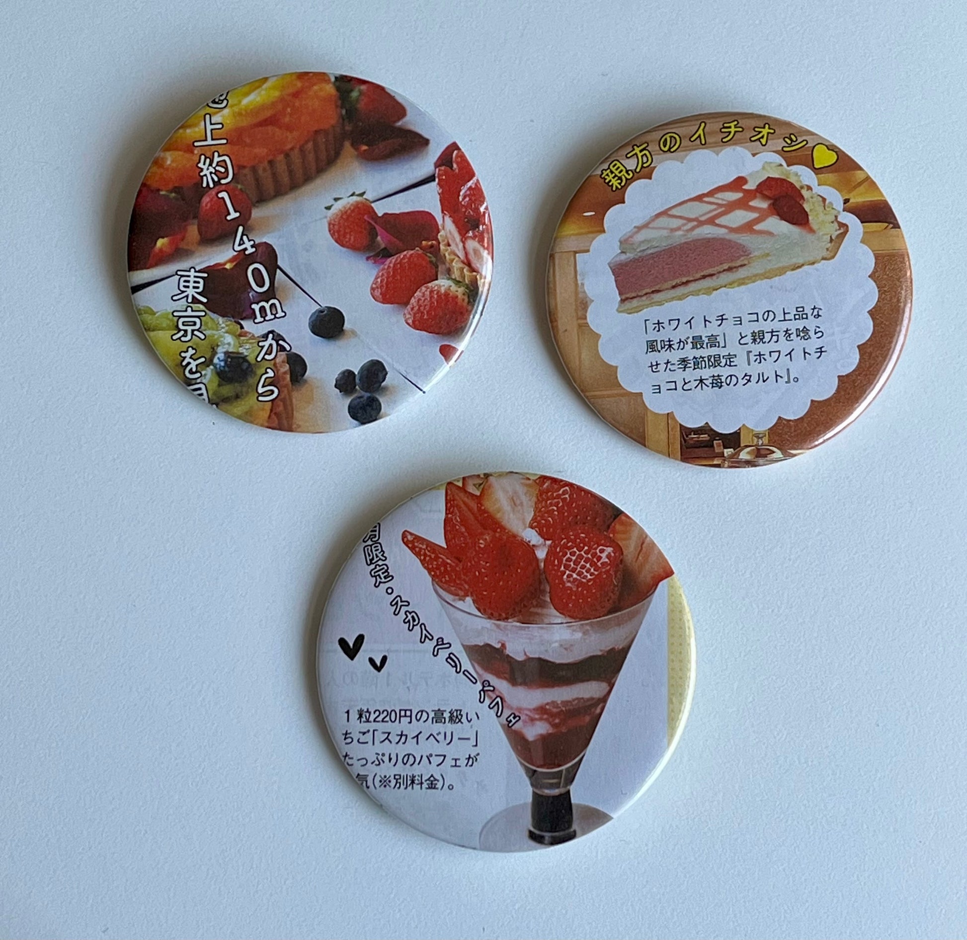A pack of THREE 2.25" pinback buttons, hand-pressed in Brooklyn from found source material