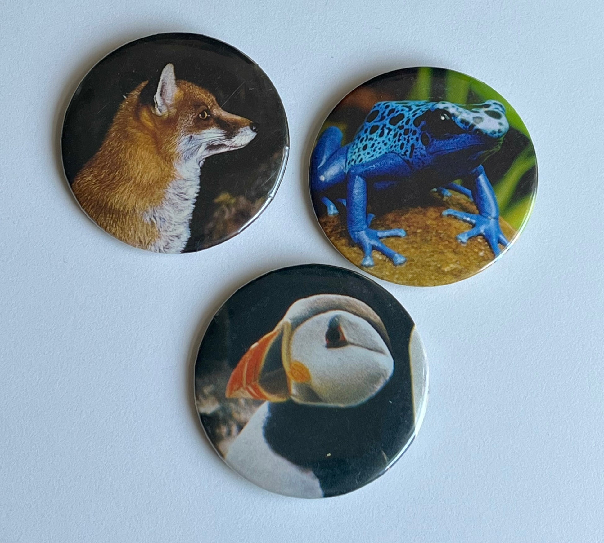 A pack of THREE 2.25" pinback buttons, hand-pressed in Brooklyn from found source material