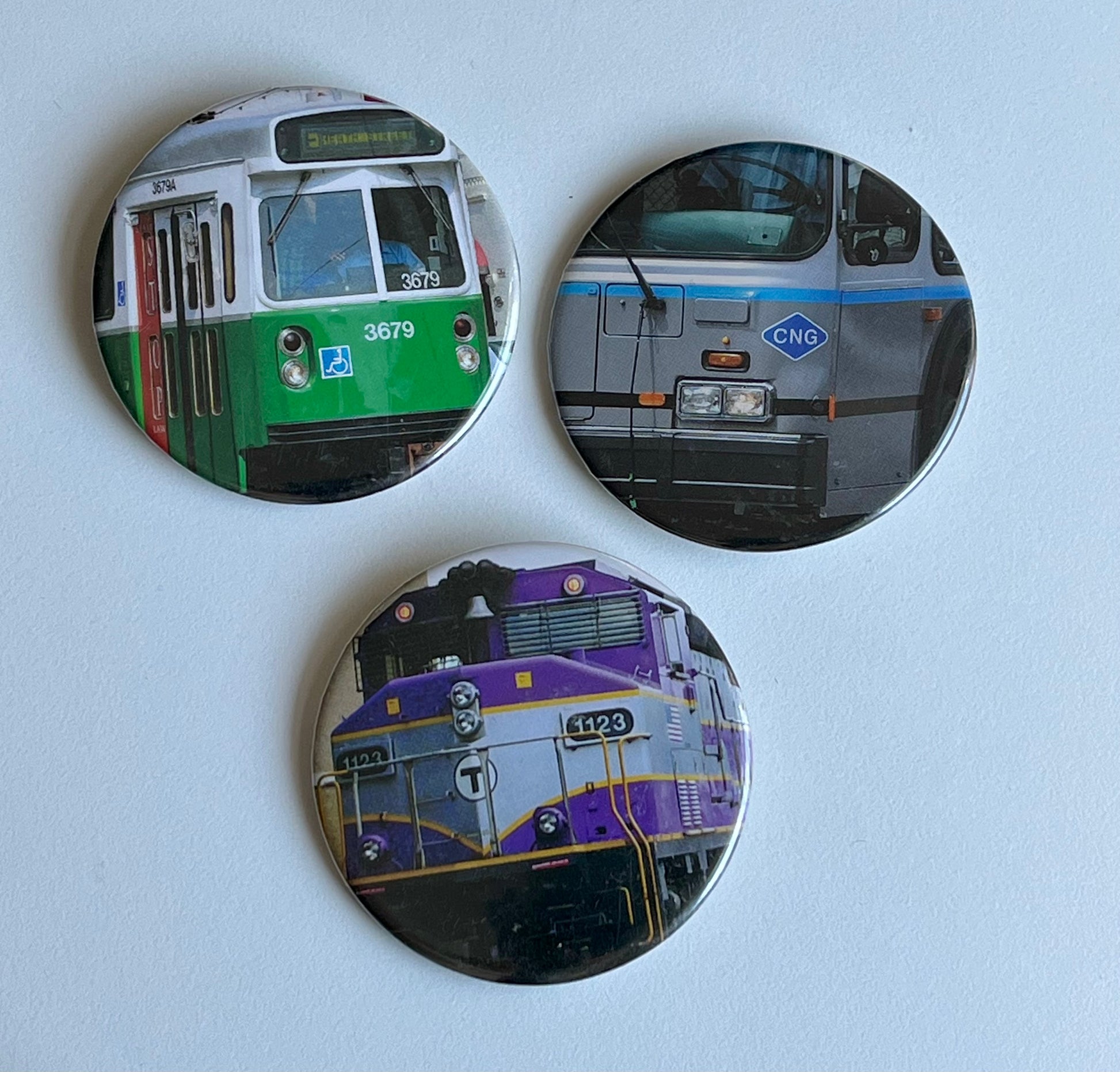 A pack of THREE 2.25" pinback buttons, hand-pressed in Brooklyn from found source material